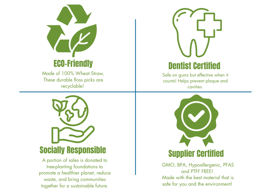 Say goodbye to guilt and hello to happy flossing! Our floss picks are designed with you and the planet in mind—so you can feel great about taking care of your smile and giving back to the Earth.
